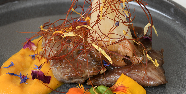 Pluma ibérica con puerros confitados a baja