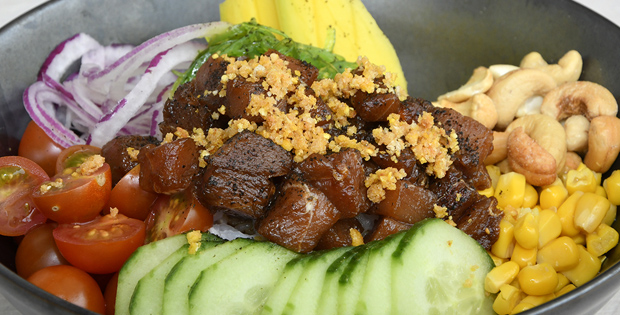 PINCHO/ TAPA Taco de atún rojo con chile 7,00 € PLATO Poke de atún rojo con mango 12.50 €