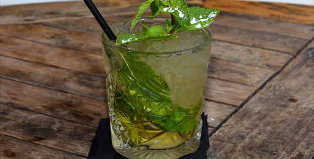 Ron, cerveza, agua con gas, azúcar, lima y hierbabuena.