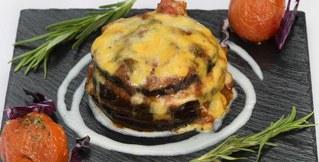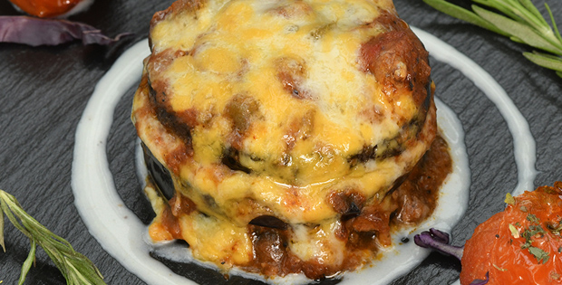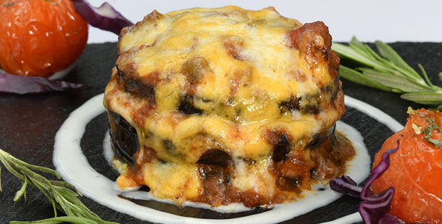 Mini lasagna de berenjena y relleno de sabroso chili con gratinado de queso parmesano.