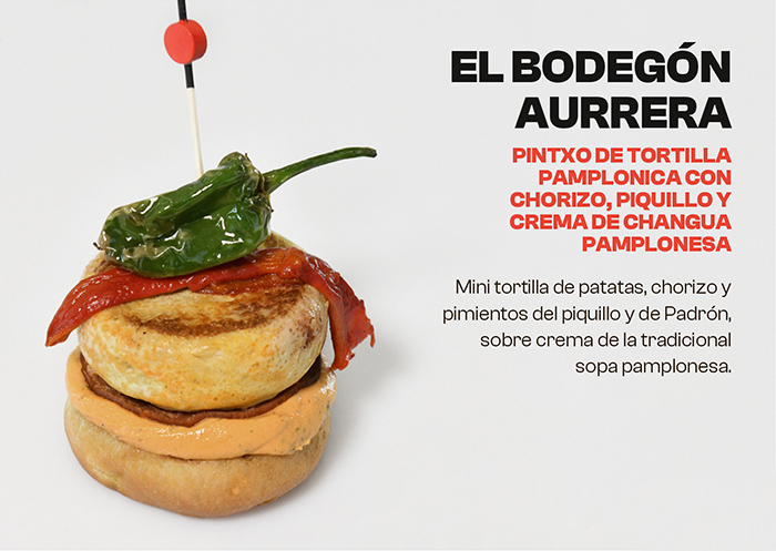 Pintxo de tortilla pamplonica con chorizo, piquillo y crema de changua pamplonesa