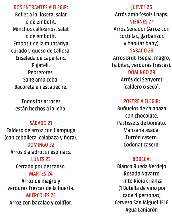 Menú - Arrocería La Marina