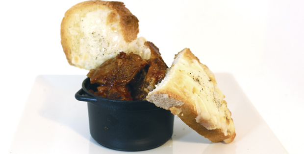 Costillas en salsa barbacoa con pan de queso gratinado Horario: De 10:00 a 23:00 (domingos cerrado)