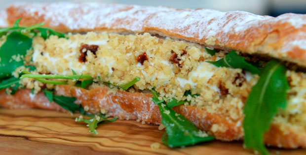 Fartón relleno de pesto con tomate seco y parmesano