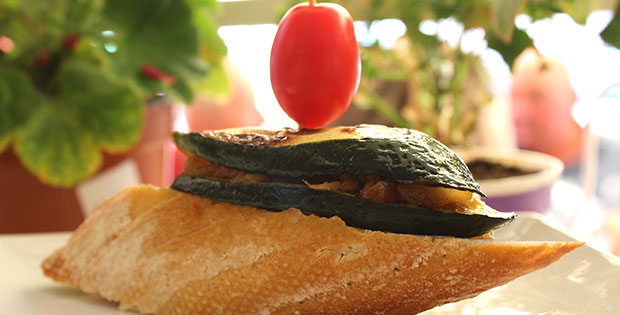 Pincho de verduras con ventresca y cebolla caramelizada. Precio de tapa + cerveza o vino o refresco De lunes a domingo de 19:00 a 23:00h