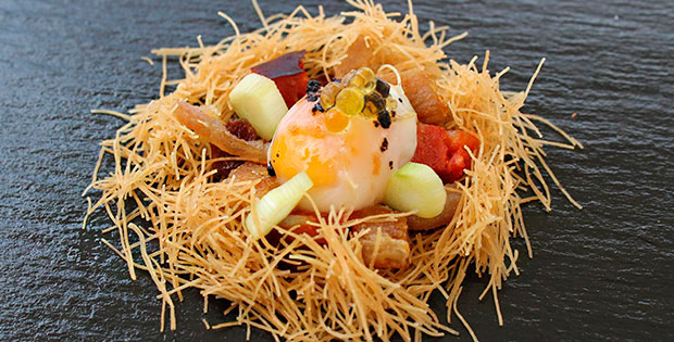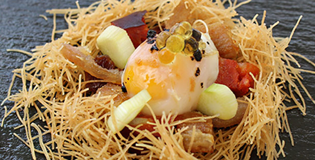 Migas con embutidos y huevo de codorniz. Precio de tapa + cerveza o vino o refresco De lunes a domingo de 17:30 a 20:30h