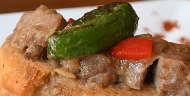 Carrillera de cerdo ibérico al aroma de mistela y sobre crotón. Horario de Tapa: De 11:00 a 16:00 y de 19:00 a 23:00