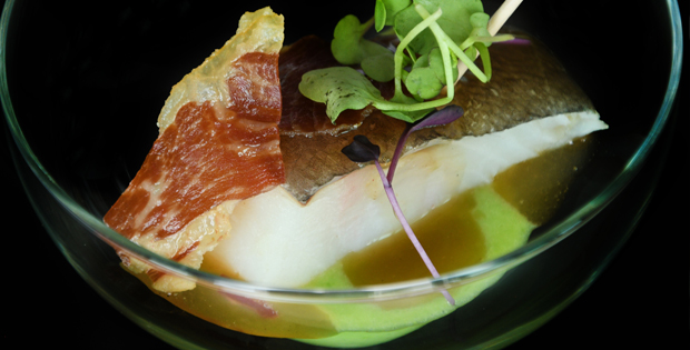 Bacalao confitado con guisantes y jamón. HORARIO TAPA DE 12.00 A 0.00