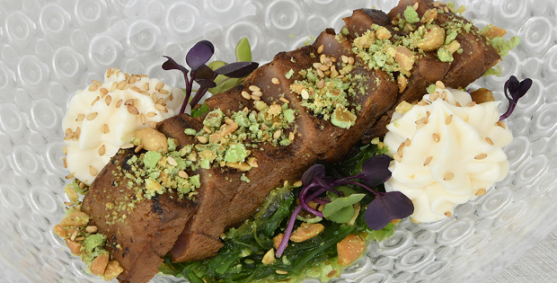 PINCHO/ TAPA Carrillera de atún braseado con alioli de coco y wasabi crujiente 7,00€