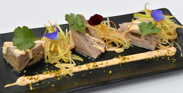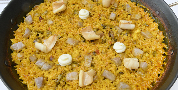 MENÚ DEGUSTACIÓN Croquetas de morrillo encebollado, con mahonesa de wasabi Tartar de atún rojo en coca crujiente y emulsión de cítricos Lomo de atún en escabeche con crujiente de verduras Parpatana de atún a la brasa con dashi ahumado Arroz de caldero de alcachofas, atún y calamar POSTRE Tira de hojaldre rellena de crema quemada