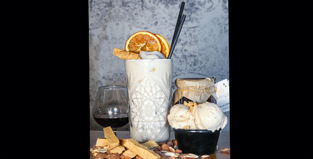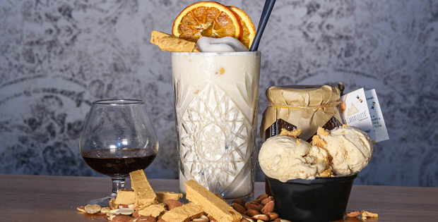 Vodka, Fondillón, 2 bolas de helado de turrón, horchata y miel.