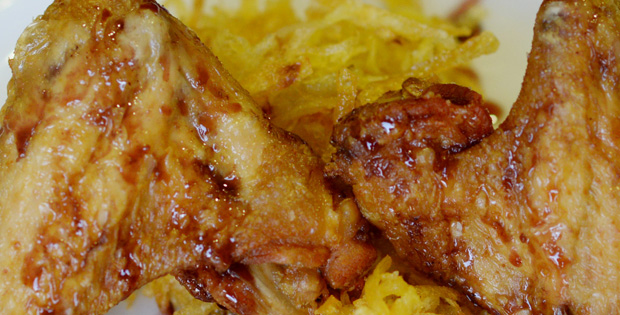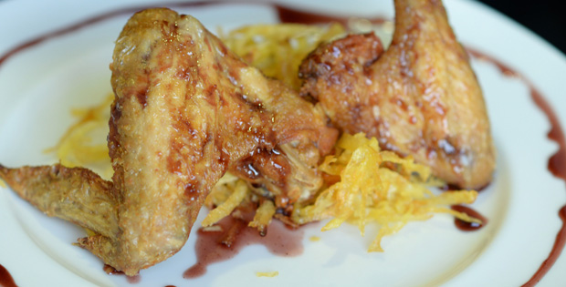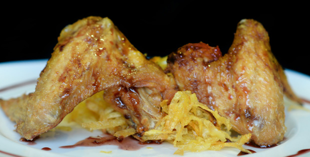 Pollo, patata. Vino y miel