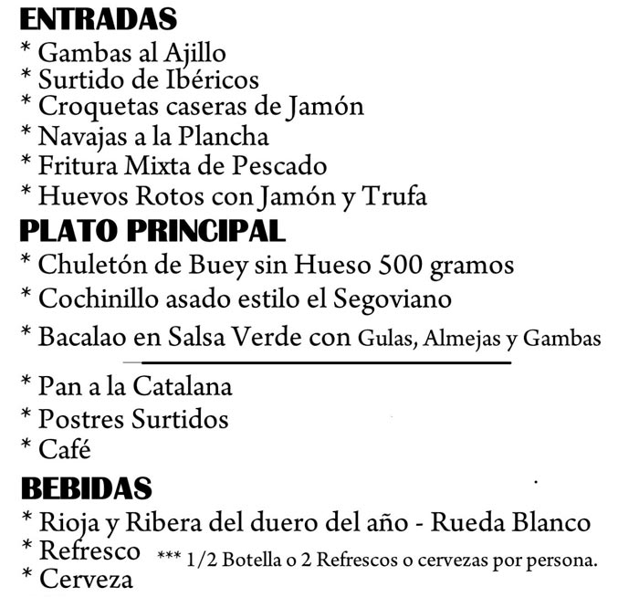 Menú 30 euros - El Segoviano