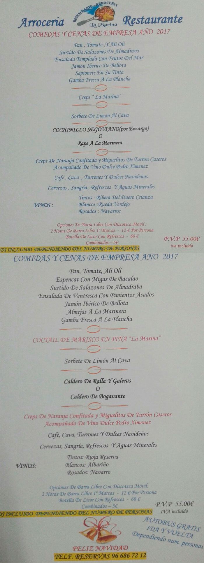 Menú 55 euros - Arrocería La Marina