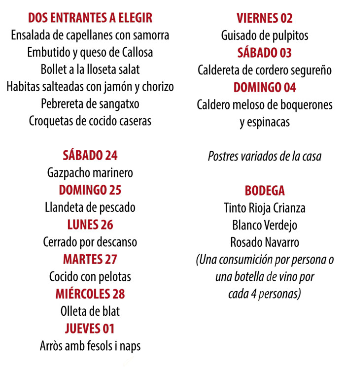 Menú - Arrocería La Marina
