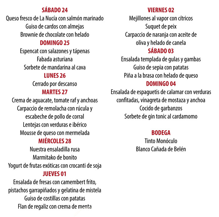 Menú - Belvedere