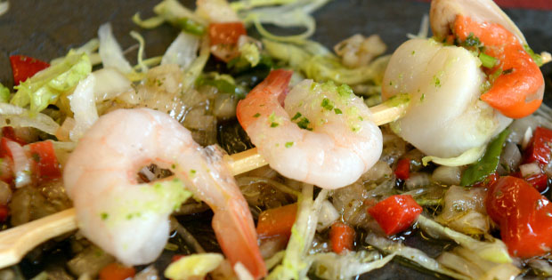 Piruleta de Zamburiña con langostino - Taberna Gallega