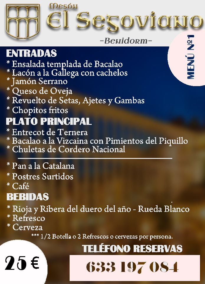 Menú 25 euros - El Segoviano Benidorm