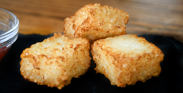 Dados de tapioca con mermelada de tomate al estilo típico de Sao Paulo. Maridalo con una cerveza 1/5 Alhambra o una copa de vino Embaucador.