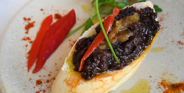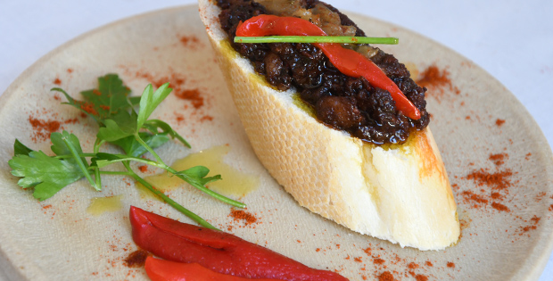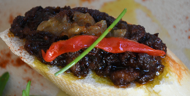 Morcilla con sobrasada y cebolla caramelizada. Horario de Tapa: De 12:00 a 17:00