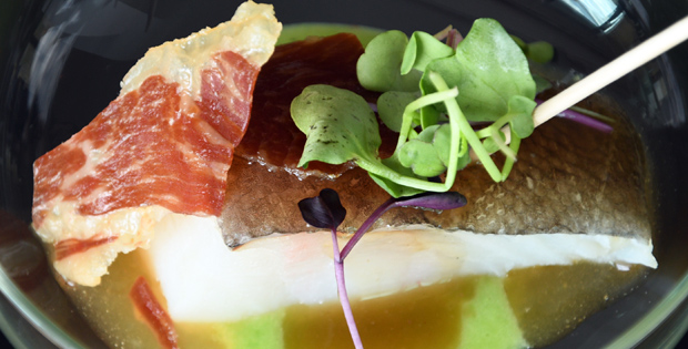 Bacalao confitado con guisantes y jamón. HORARIO TAPA DE 12.00 A 0.00