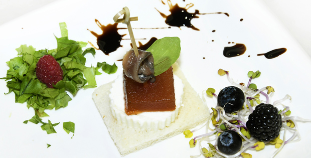 Queso de burgos, membrillo, anchoa y pan. HORARIO DE TAPA: De Lunes a Viernes: 12:30 a 15:00; de 19:00 a 21:30 y Sábados de 12.30 a 15.00 (Domingos cerrado)