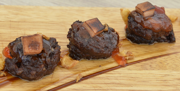 Medallones de morcilla de cebolla, mermelada de