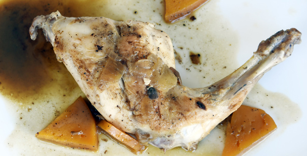Conejo de reducción de moscatel acompañado de cebolla caramelizada y calabaza guisada HORARIO DE TAPA: De 12:30 a 14:00hrs. Domingos cerrado.