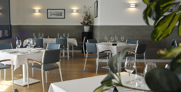 Arroces y pescado de la bahía en un acogedor local con una terraza cubierta y vistas al puerto deportivo.