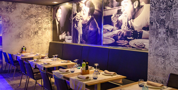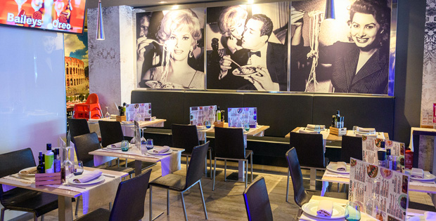 Restaurante italiano moderno con helados artesanos y pizzas con una bonita decoración y vistas del mar. Horario de 8:00 a 2:00.