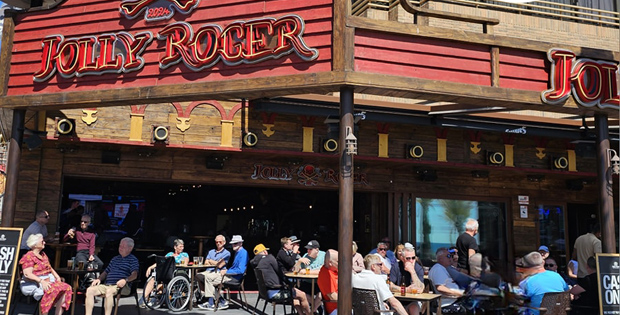 En primera línea de playa, decorado como un barco pirata, encontramos este local de entretenimiento, baile, deportes, cócteles y mucha diversión. Abierto de 10.00 a 02:00.